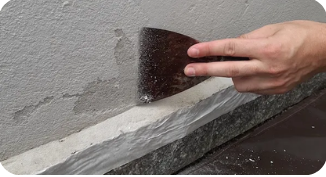 Tratamos fissuras, bolor e reboco danificado para garantir uma base segura e pronta para receber nova pintura.